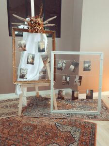 Vous avez un prévu un Photo Booth et envie que chacun expose ses photos, pensez à nos cadres anciens ici associés à notre chevalet. Ayez de l’imagination et suspendez-les dans les arbres ou accrochez des photos de la personne pour qui c’est le grand jour, disposez-les en décoration avec des guirlandes lumineuses…