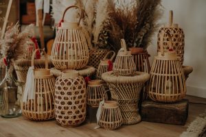 Pour un esprit bohême, une envie de voyager, une ambiance tamisée, Mosee vous propose à la location ses lanternes tressées de différentes dimensions. Disponibles aussi à la location, les tabourets tressés pour créer des jeux de volumes et apporter une touche ethnique à vos mises en scènes.